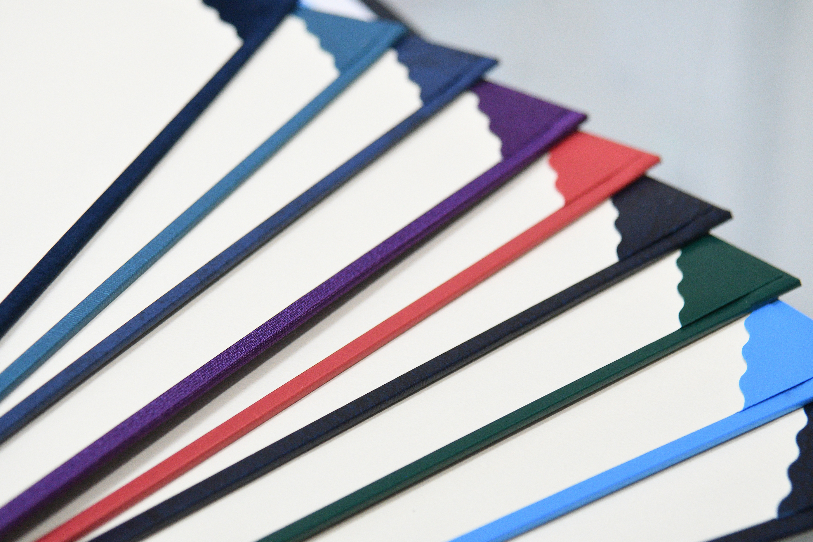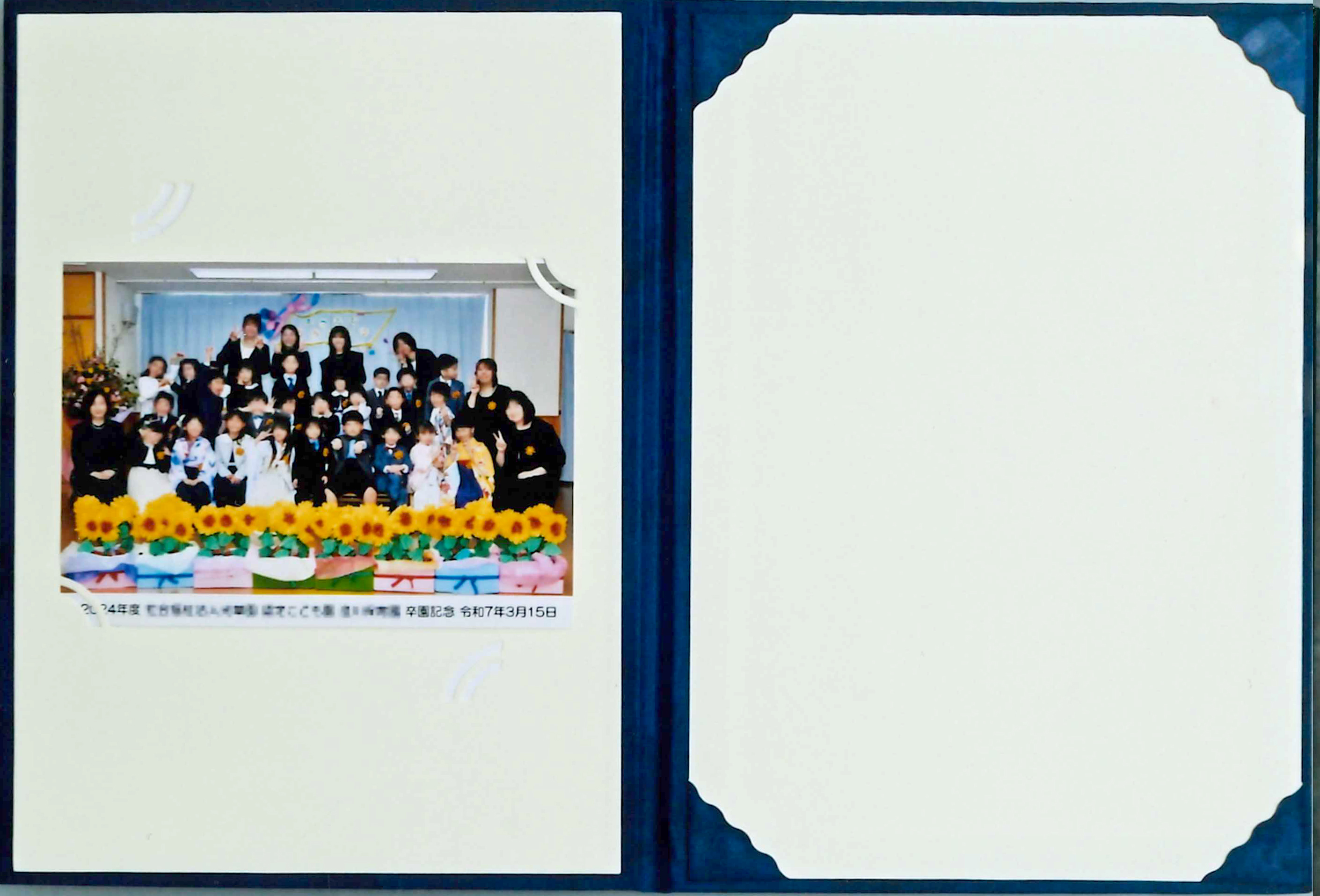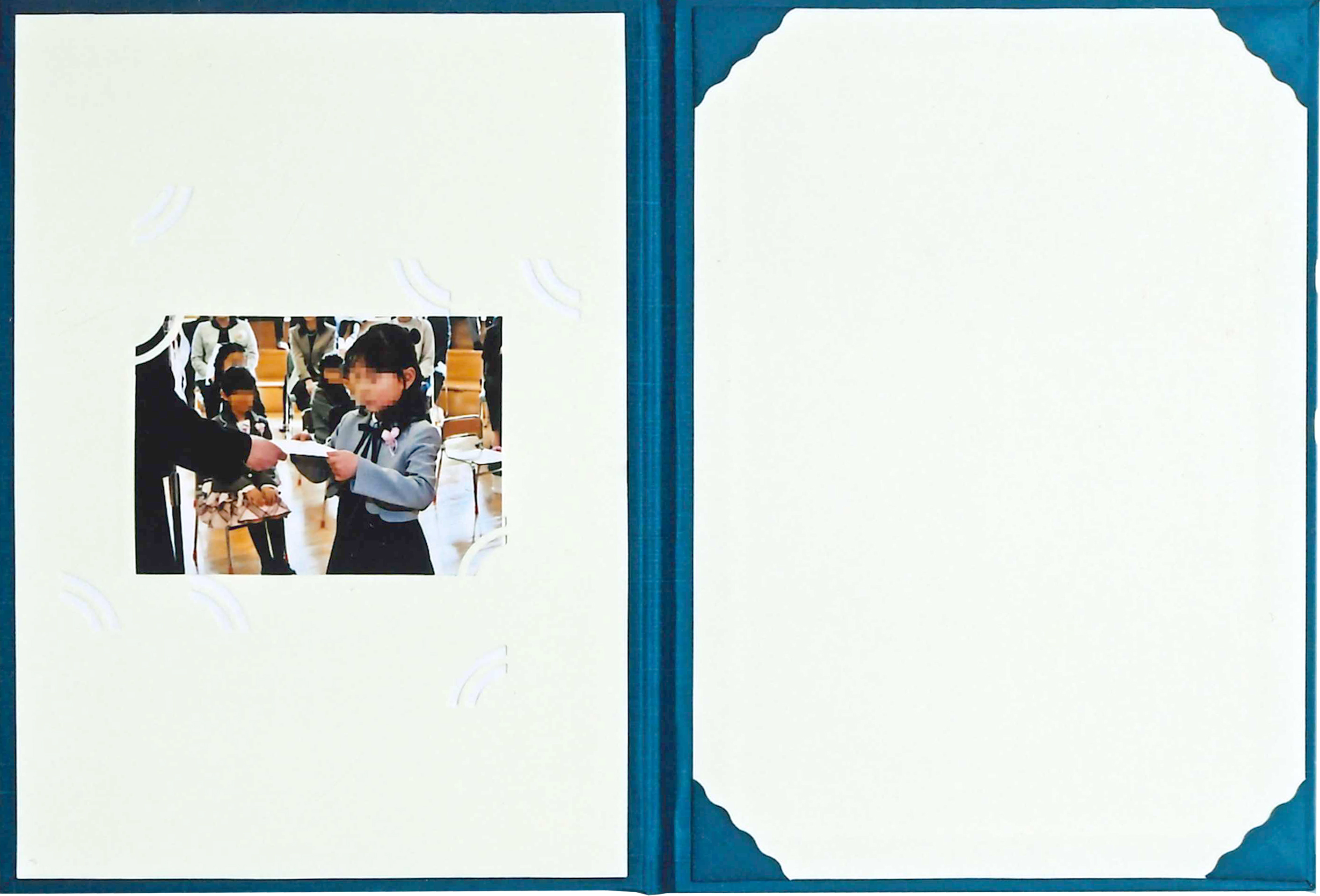 卒業証書。昔は筒状の賞状入れが一般的でしたが、今は見開きの物が主流になってきました。