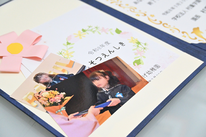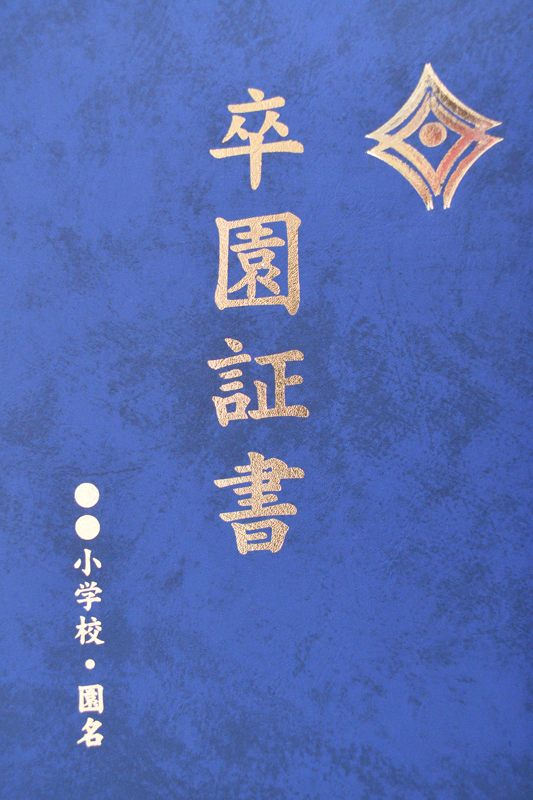 卒業証書。昔は筒状の賞状入れが一般的でしたが、今は見開きの物が主流になってきました。