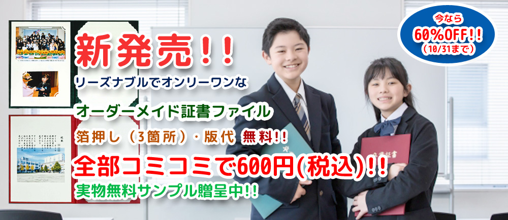 弊社では、普段から卒業アルバムや証書ファイルの製作を行っております。そのノウハウを活かし、新たにオリジナルな証書ファイル(証書入れ)(その人だけのオンリーワン)をラインナップに加えて更に格安にご提供いたします。